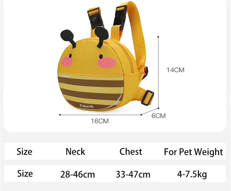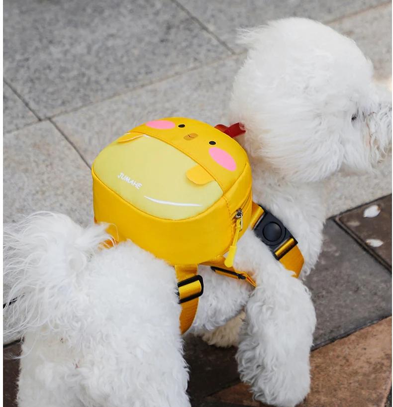 Dog Harness with Backpack Cartoon Animal Bee Chick Shaped Pet Snack Chest Bag Travel Outdoor Supplies for Small Medium Dog Cats